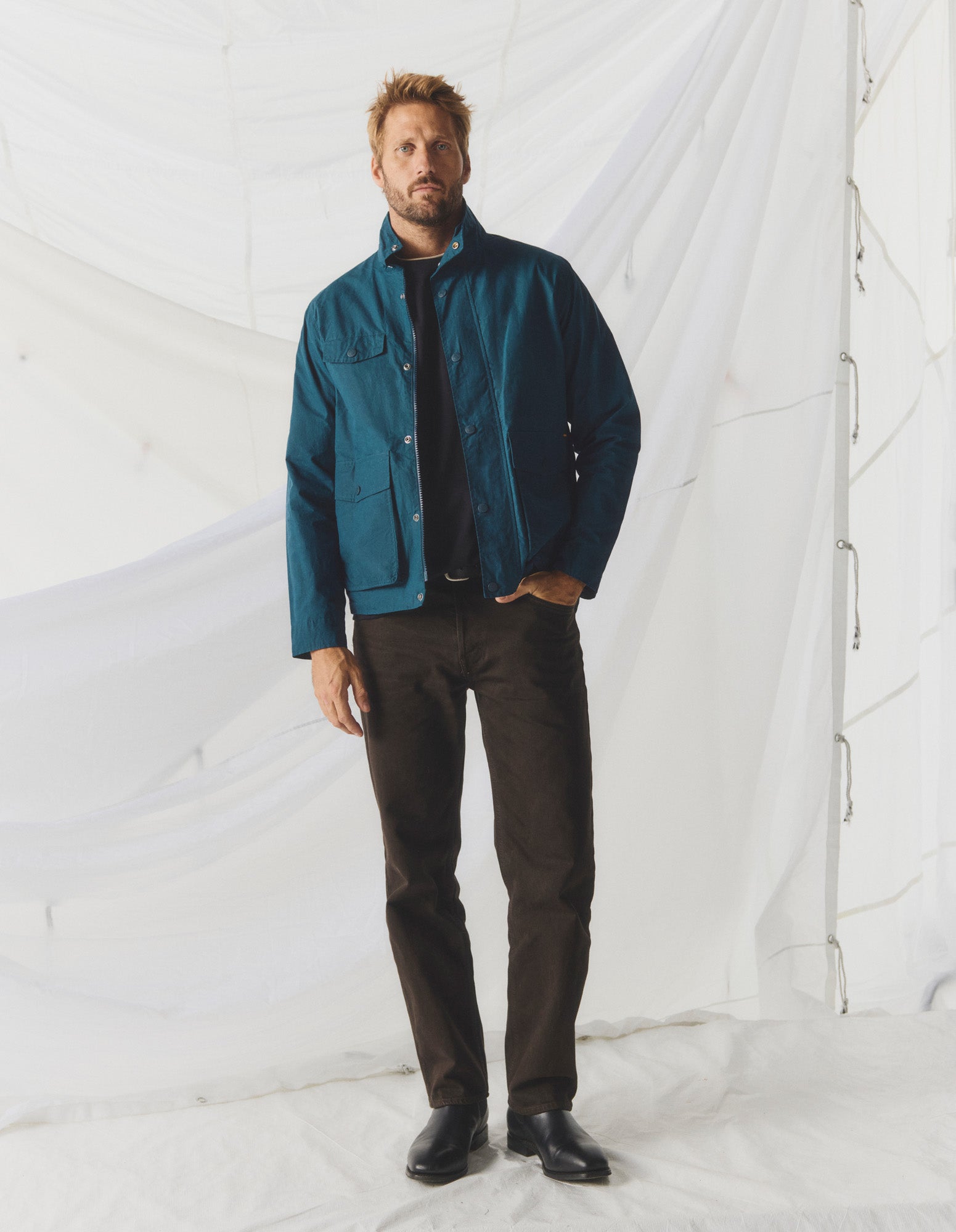 Designed for comfort through changing seasons with map-print lining, reinforced stitching, studded front placket, dual-way zip and adjustable cuffs. A relaxed, heritage-inspired essential.