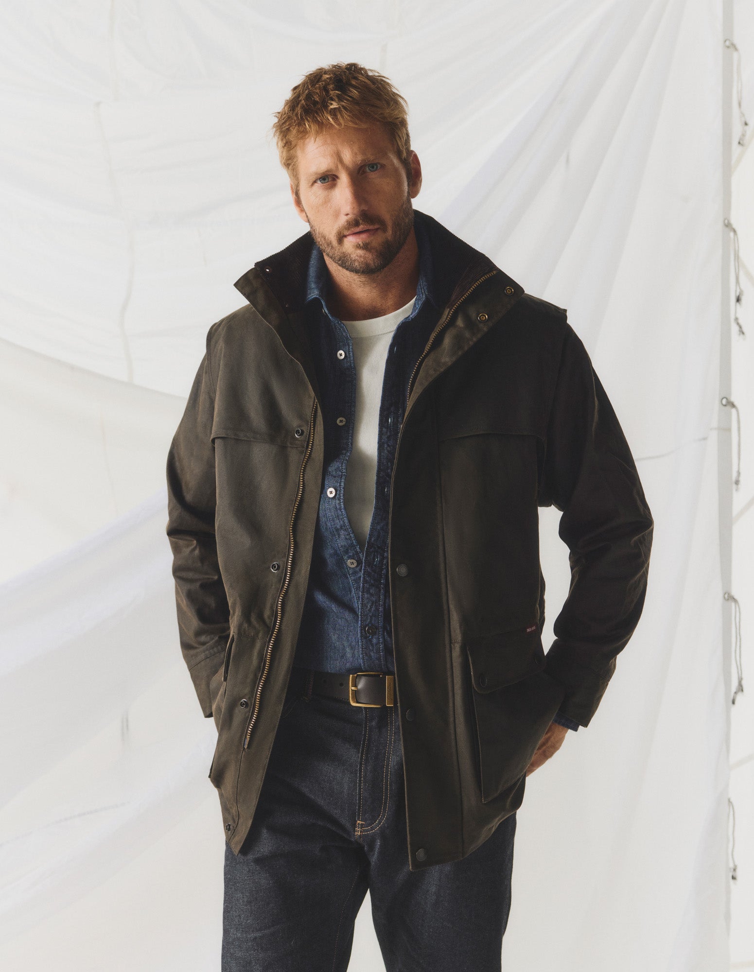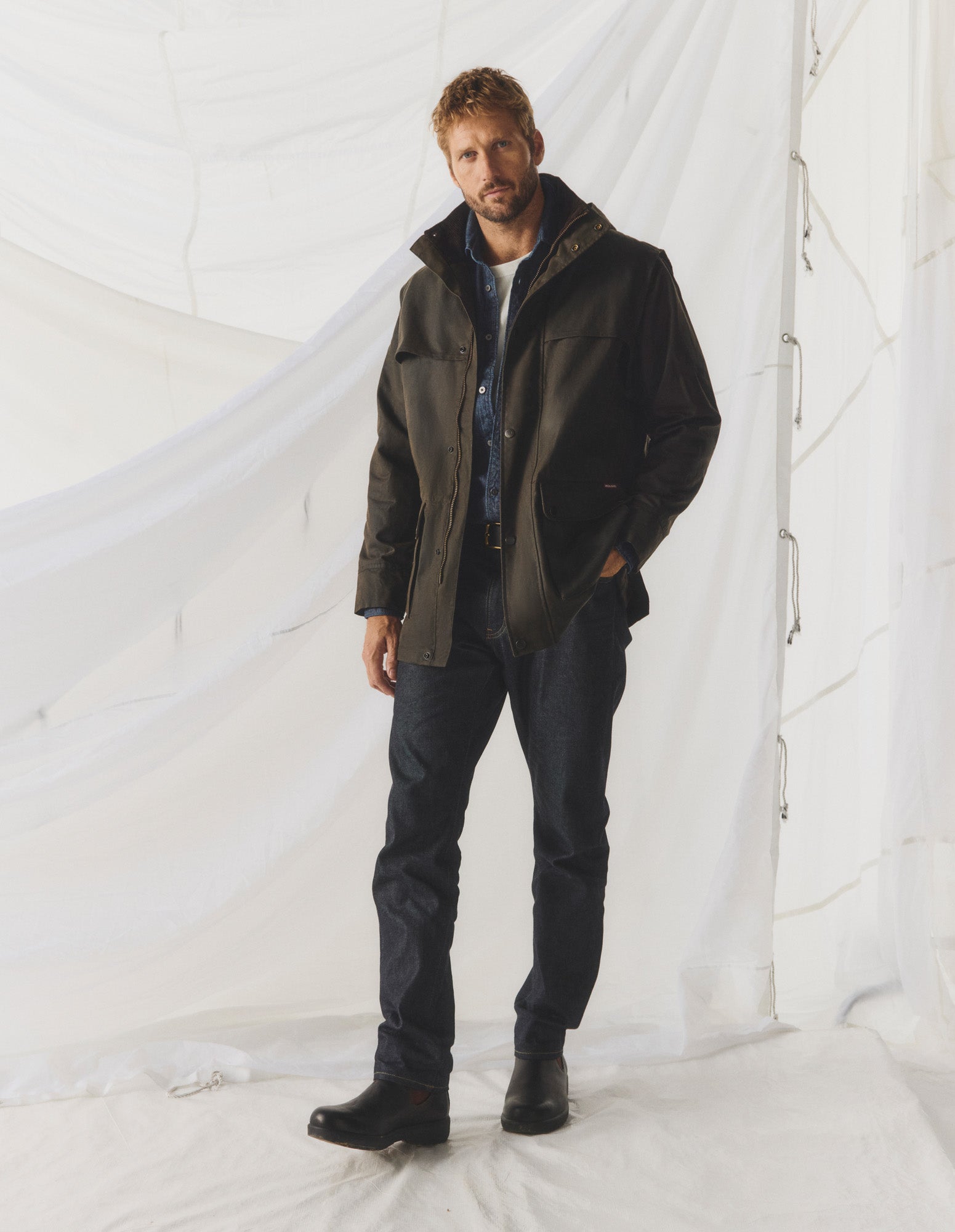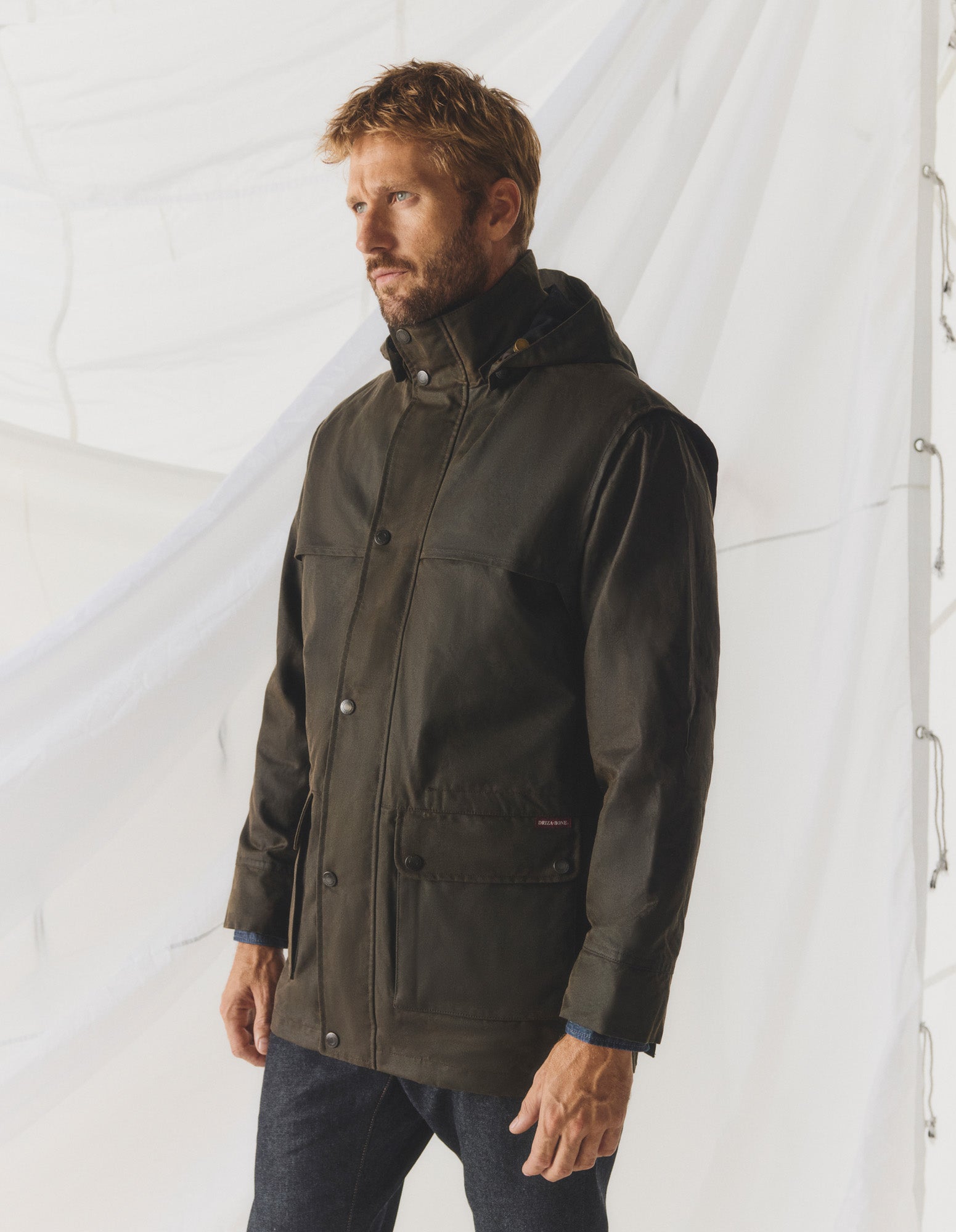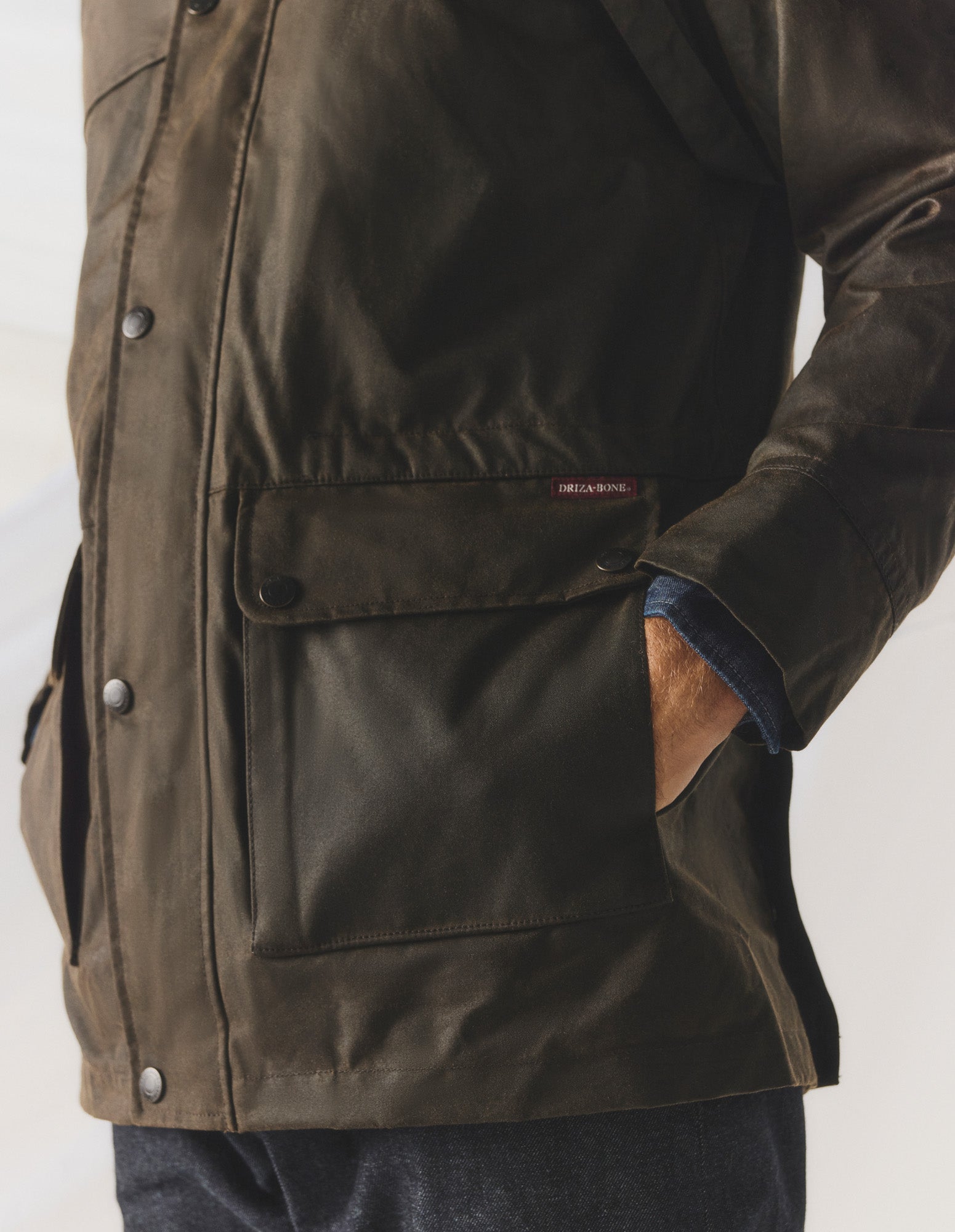 A traditional field coat, the Bushman is crafted from our premium wind and water resistant heavy weight oilskin. Featuring a classic square cape shoulder, heavy duty two way zip with studded flap closure, elasticated storm cuffs, two way pockets with flaps and handwarmer side pockets, and back studded vents.