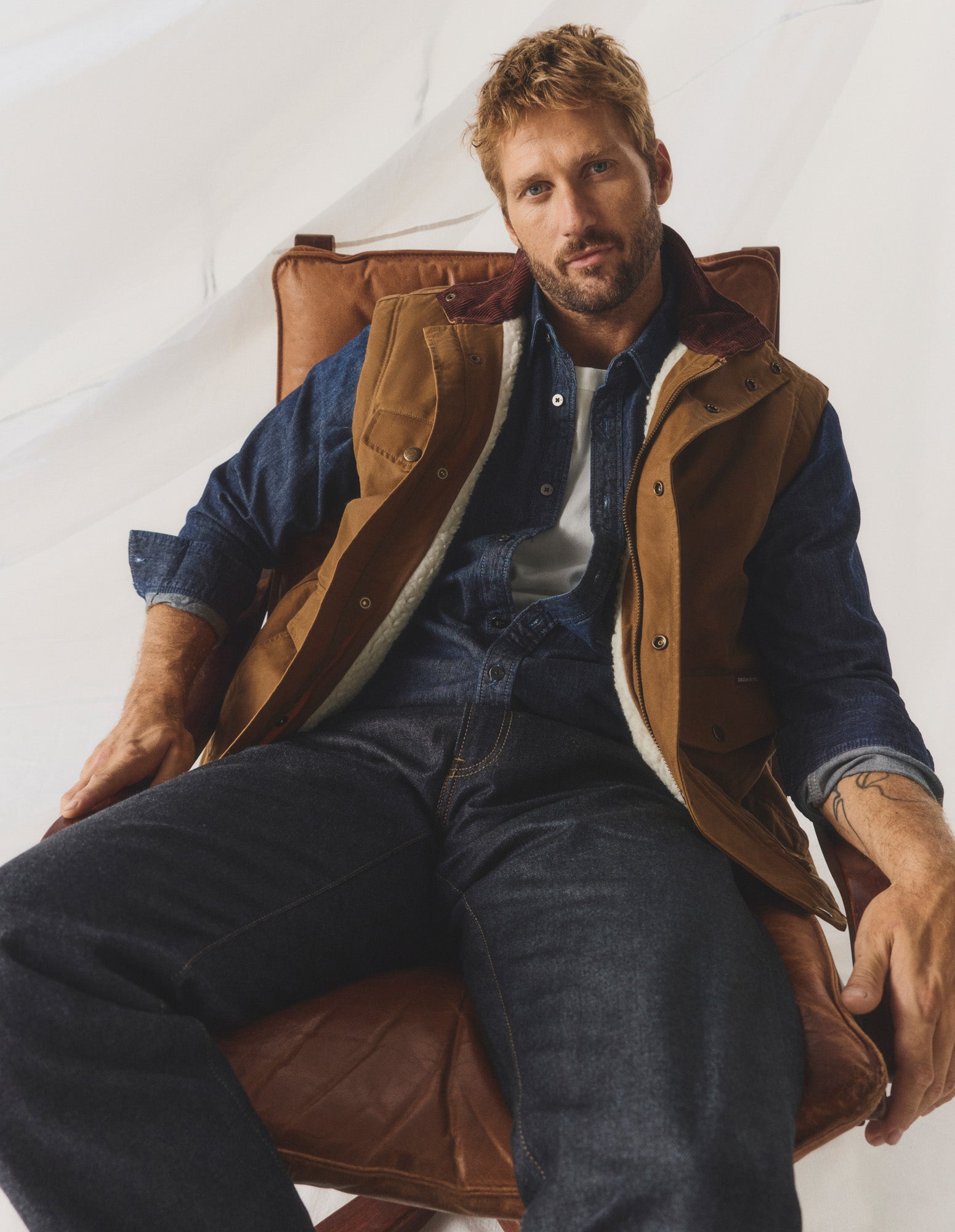 This hard-wearing classic is crafted from our heavy weight oilskin, lined in wool shearling. Featuring adjustable side splits, corduroy lined collar, multiple pockets, studded closures and a solid two-way front zip.