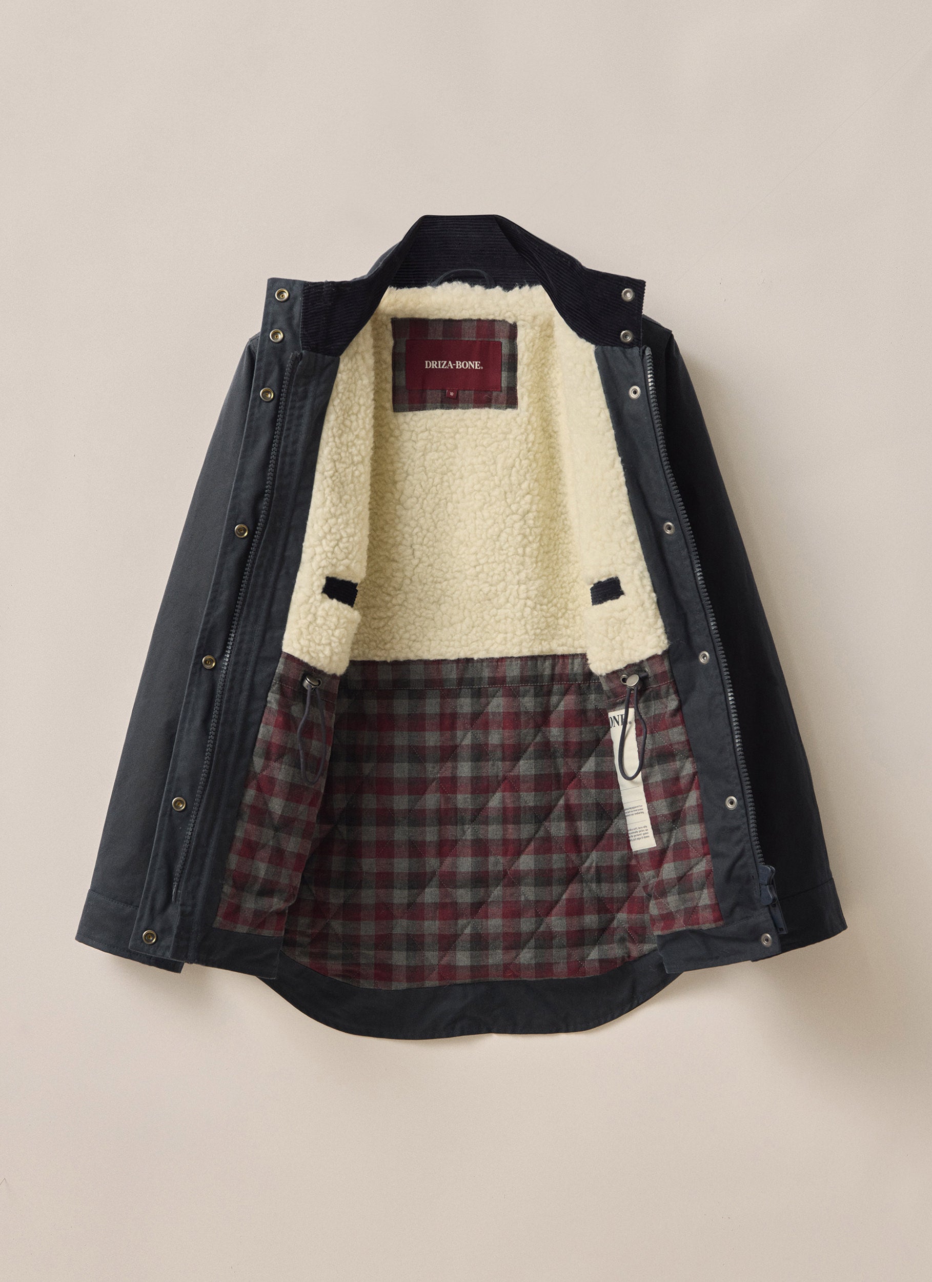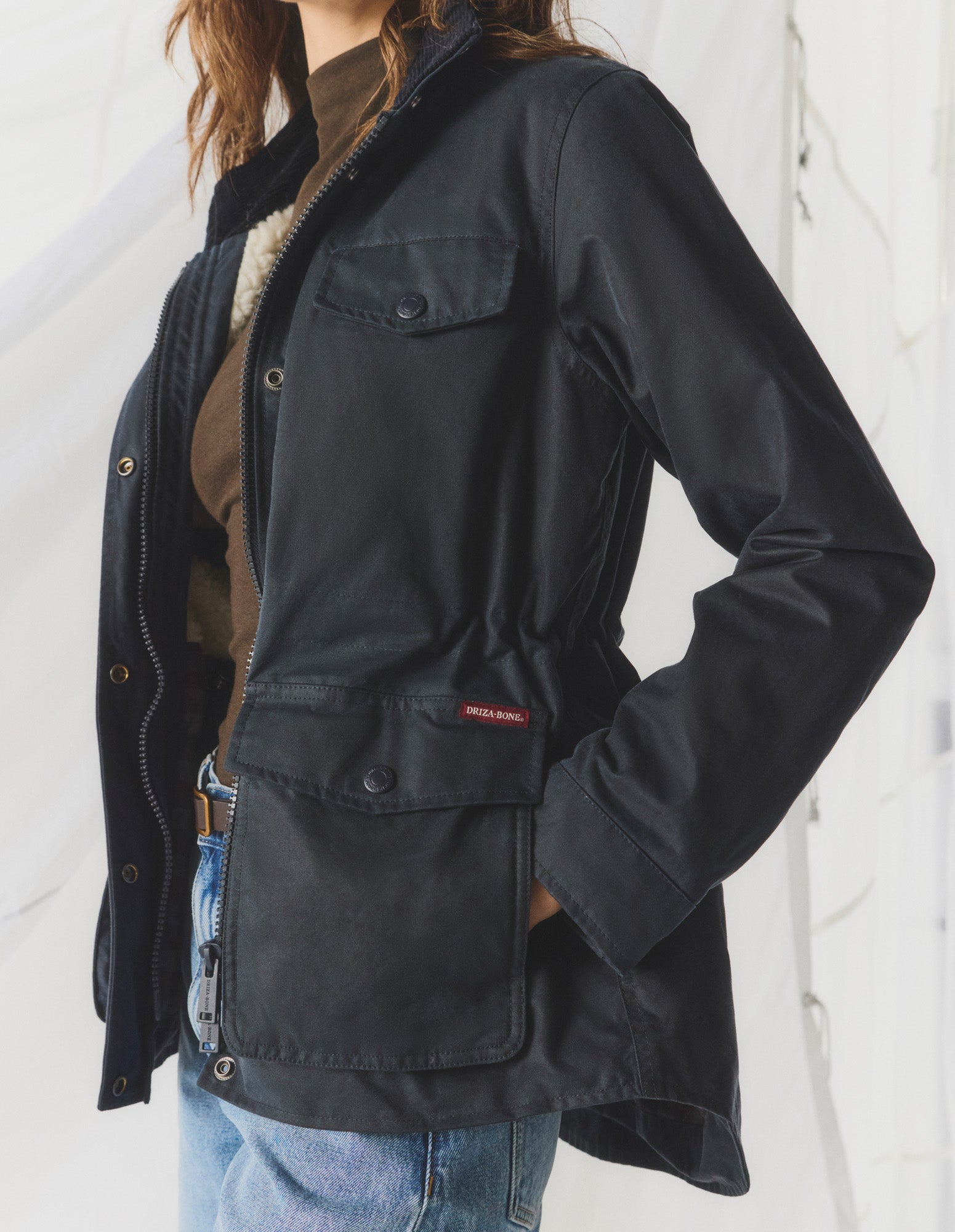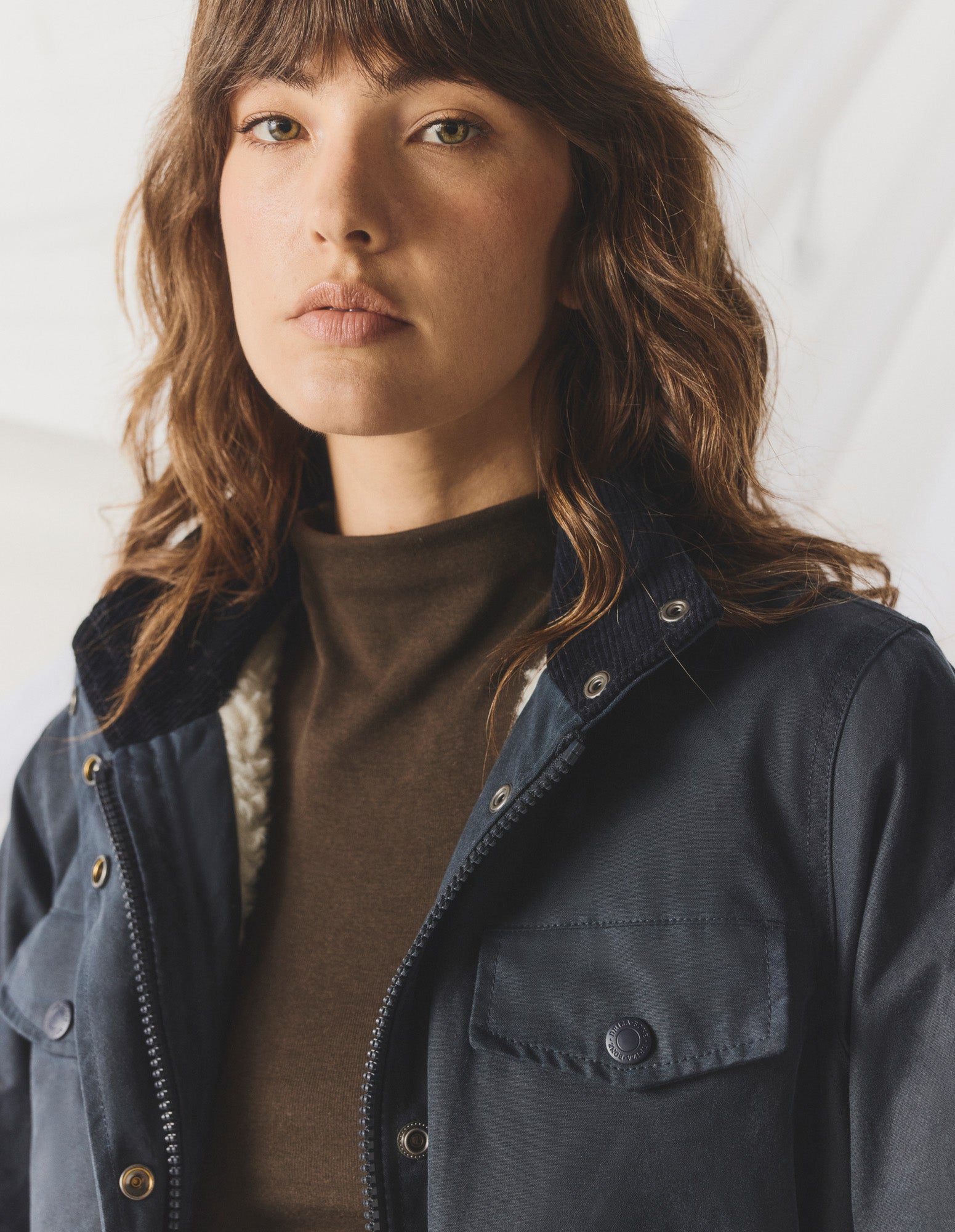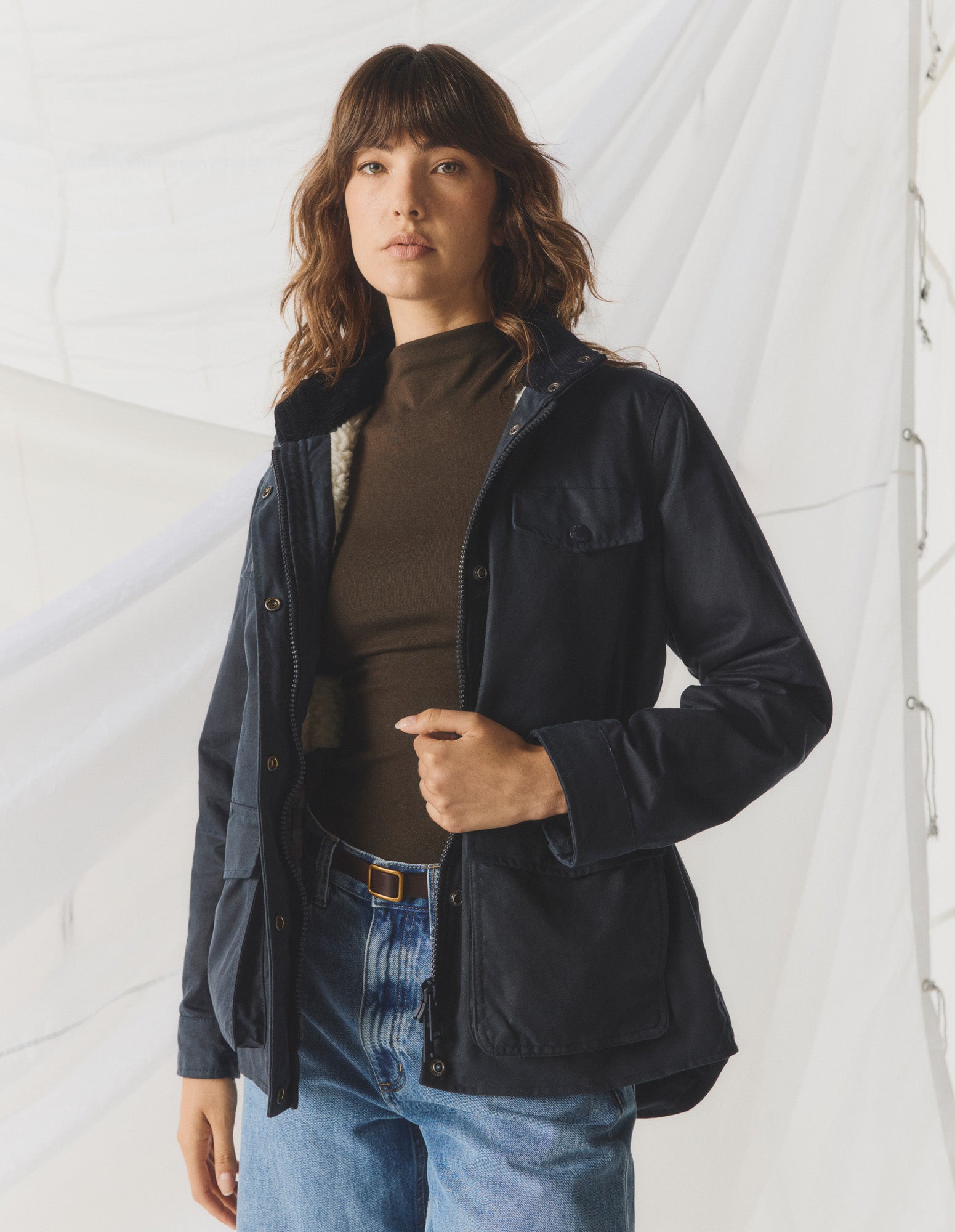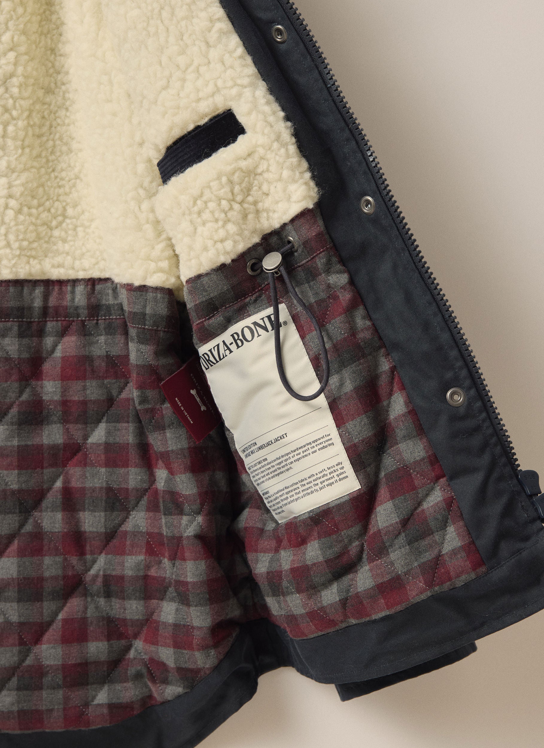 Crafted from our premium wind and water resistant heavy weight waxed cotton, the Women's Lumberjack is lined with 100% wool shearling and features a corduroy lined collar, zip front opening with studded flap closure, drawcord waist, two way pockets with flaps and handwarmer side pockets and an internal pockets.