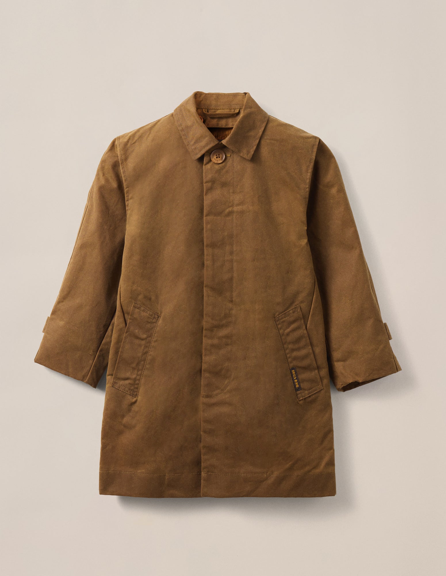 Crafted from heavy weight waxed cotton with a traditional cotton check lining, this classic all-season coat is designed to withstand the elements in style. Designed with functional details including pockets, a concealed button placket, adjustable tab cuffs, and a back vent for effortless movement.